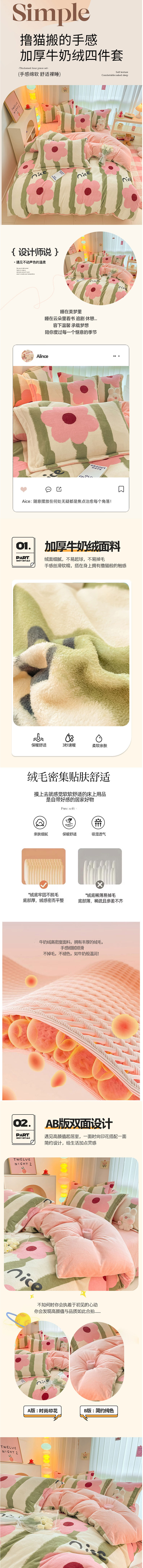 概述:ins高克重印花牛奶絨花邊四件套直播款冬季保暖套件;貨號:315;印染工藝:活性印染;織造工藝:印花圖案:植物花卉;材質(zhì):牛奶絨......