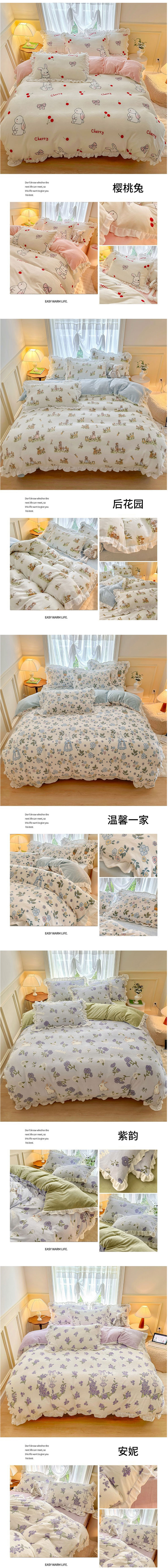 > 家居家紡 高克重印花牛奶絨花邊四件套