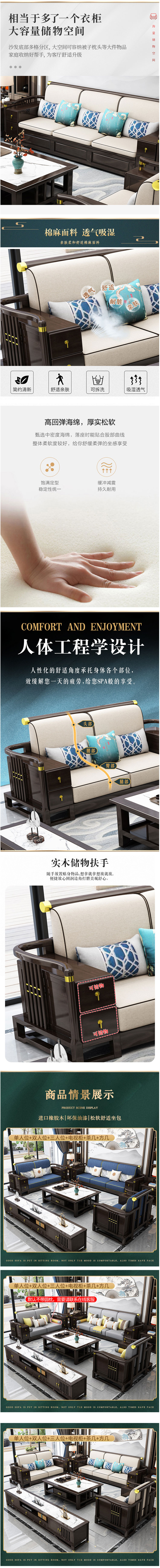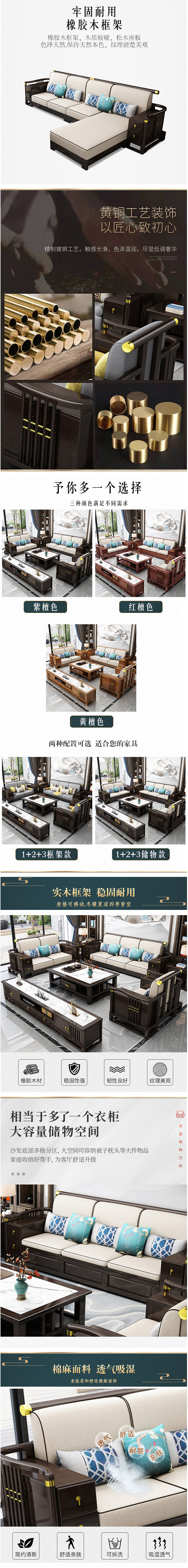 • 新中式家具 實木沙發(fā)組合客廳 冬夏兩用布藝沙發(fā) 3755元起