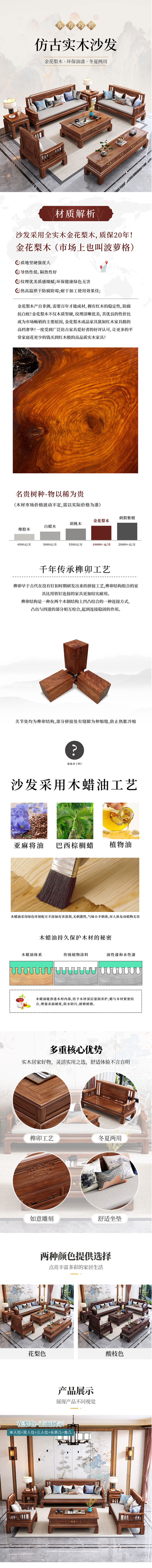 •  新中式家具 花梨木實(shí)木沙發(fā) 古典沙發(fā)組合 7358元起