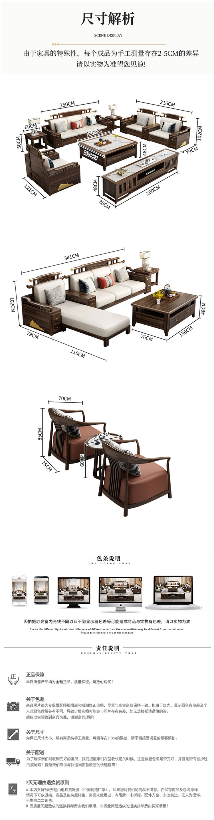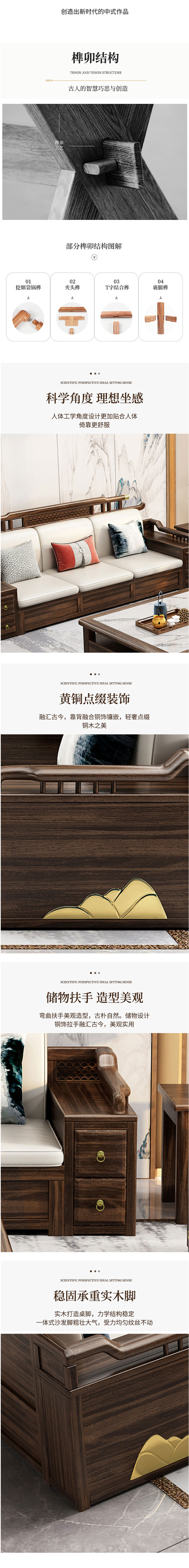 新中式家具 烏金木實(shí)木沙發(fā)組合  7540元/套起