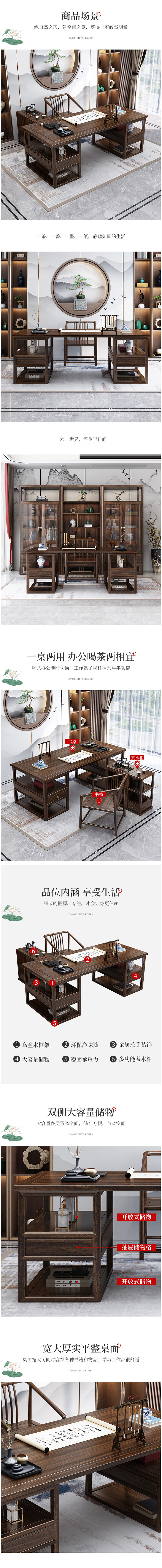 > 新中式家具 烏金木實(shí)木書桌椅 書房禪意寫字臺