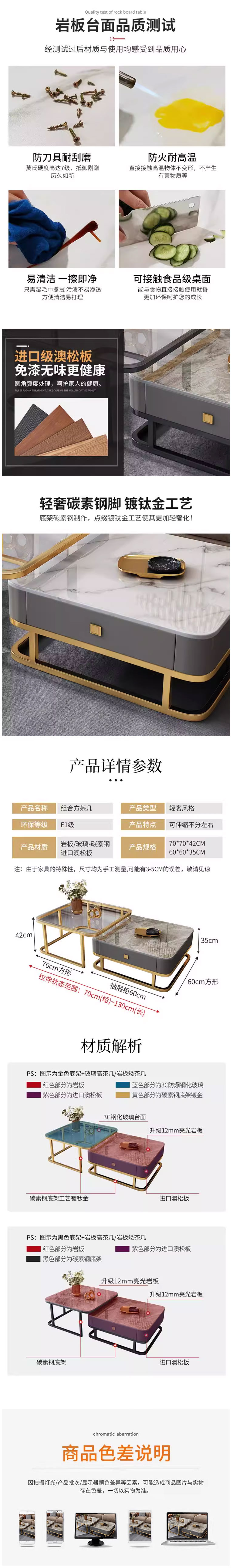 • 簡約家具 輕奢意式巖板茶幾電視柜 現(xiàn)代簡約伸縮正方形茶幾桌 1404元