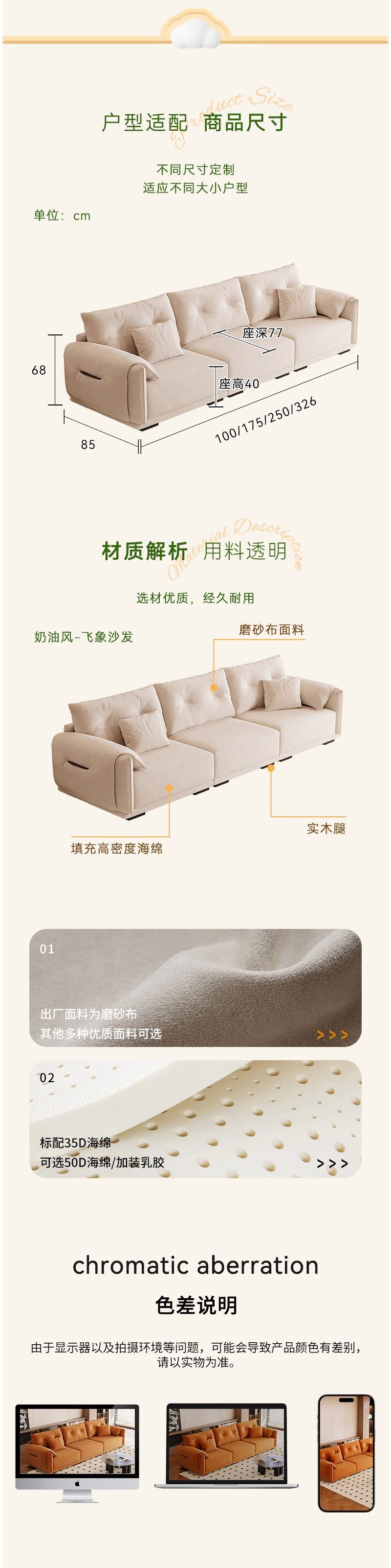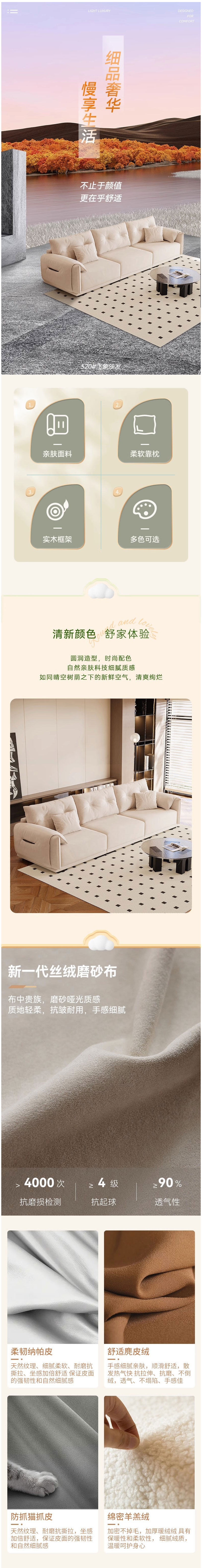 • 簡約家具 流行意式網(wǎng)紅奶油風(fēng) 科技布糖果布藝沙發(fā) 2395元