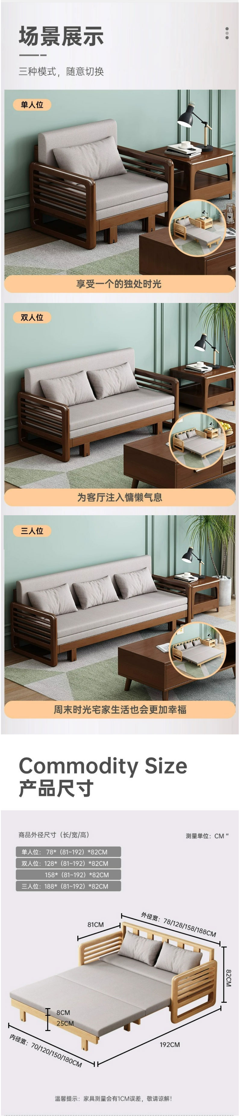 • 北歐家具 實木沙發(fā) 小戶型兩用拉床組合沙發(fā)床 2184元起