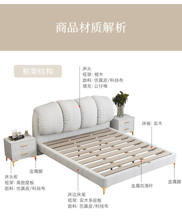產(chǎn)品材質(zhì):科技布,舒適皮床