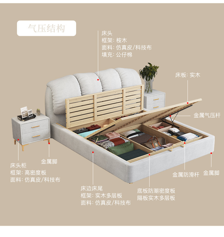 氣壓儲(chǔ)物床:床下多格分區(qū)儲(chǔ)物,堪比平放的大衣柜。