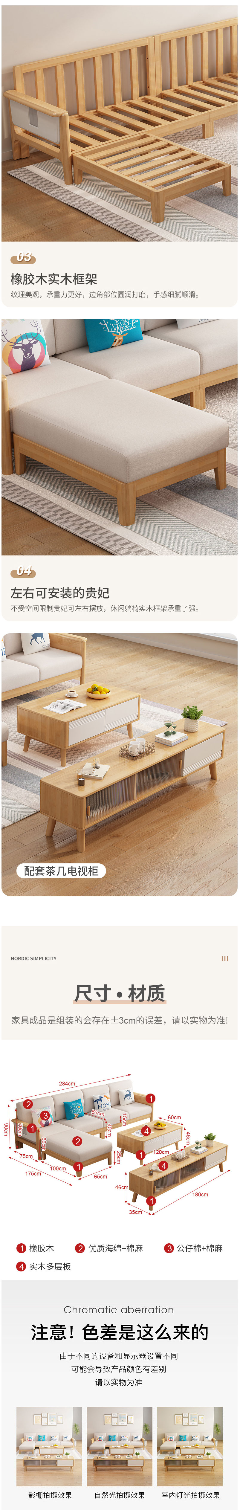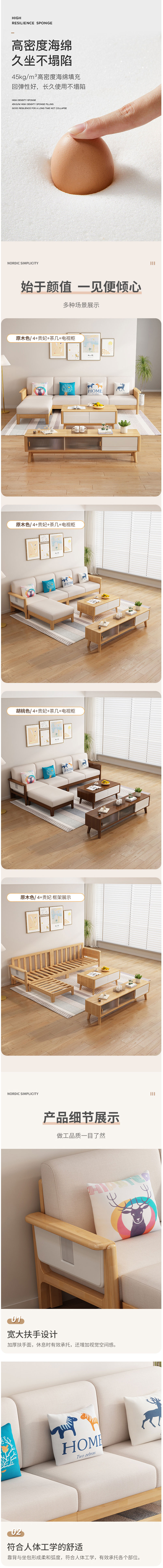 • 北歐家具  橡膠木實(shí)木沙發(fā)帶腳踏 輕奢簡(jiǎn)約組合布藝沙發(fā) 3146元