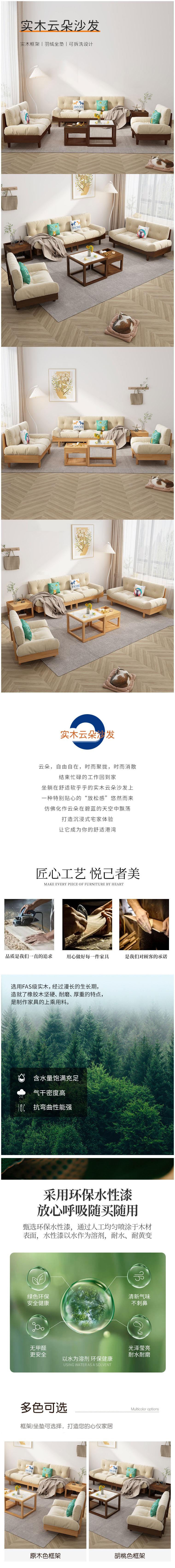 北歐家具 原木奶油風(fēng)云朵沙發(fā) 現(xiàn)代小戶型全實(shí)木布藝沙發(fā)
