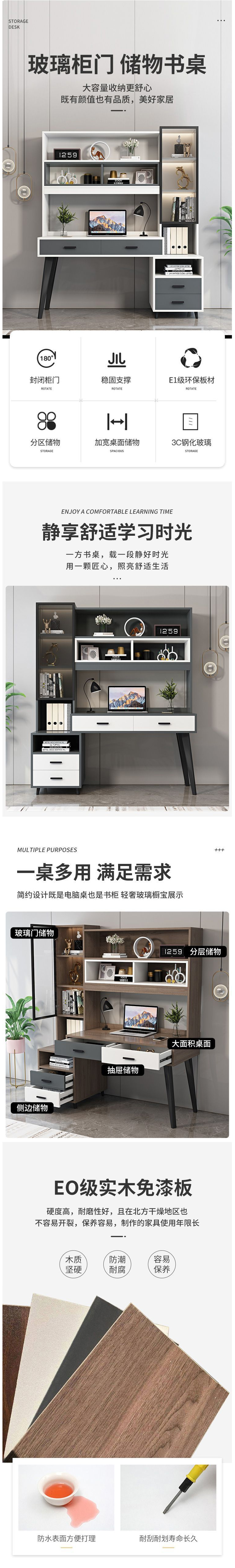 • 簡約家具 書桌書架一體桌 輕奢家用學(xué)生電腦臺式桌 1985元