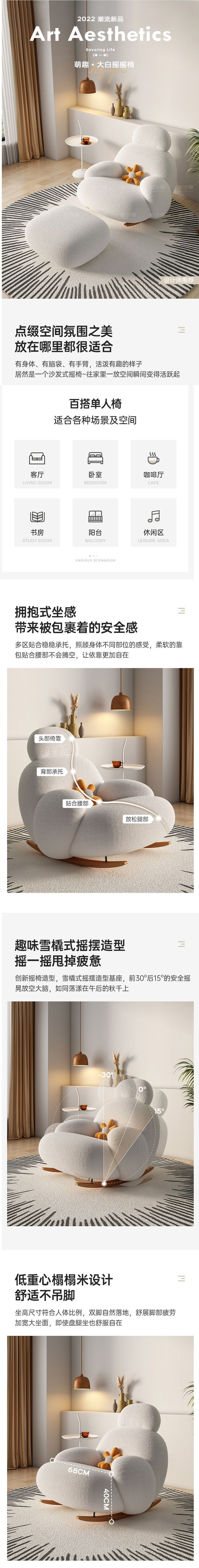 > 北歐家具 奶油風(fēng)懶人沙發(fā) 網(wǎng)紅可愛小沙發(fā)單人搖椅