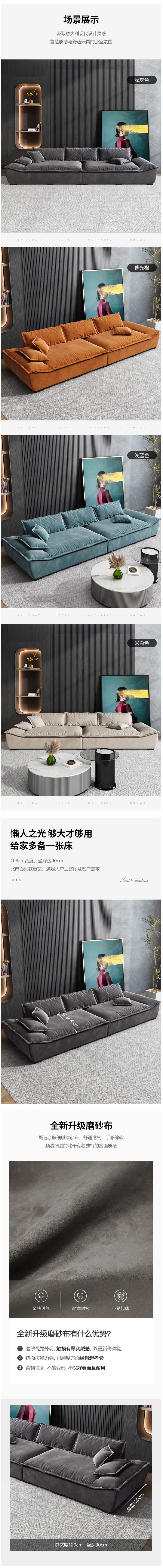 • 簡約家具 羽絨科技布沙發(fā) 意式輕奢客廳布藝沙發(fā) 2079元