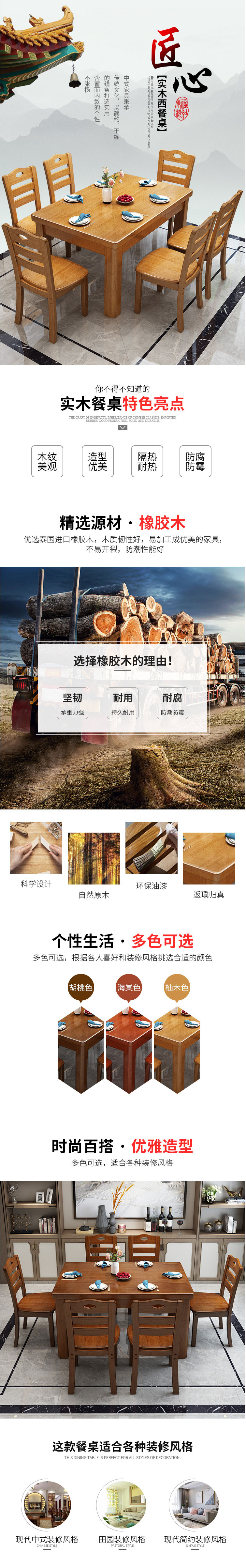 • 中式家具 實木餐桌 長方形木質(zhì)西餐桌組合 912元
