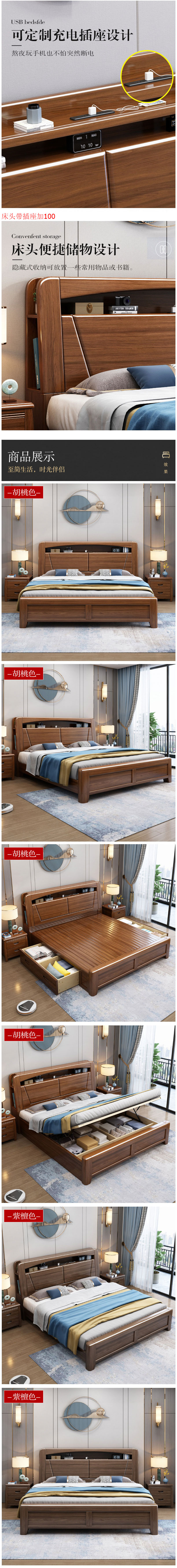 • 中式家具 實(shí)木床 胡桃木儲物實(shí)木床 1519元