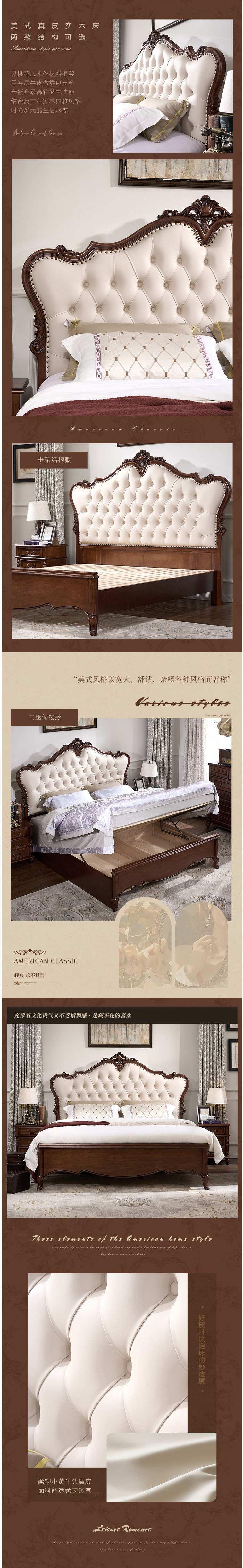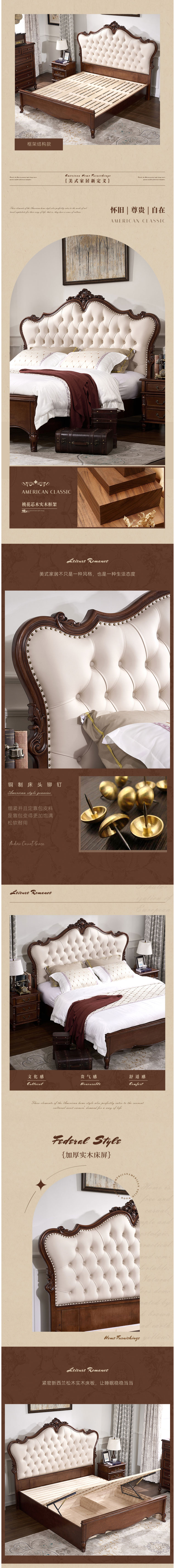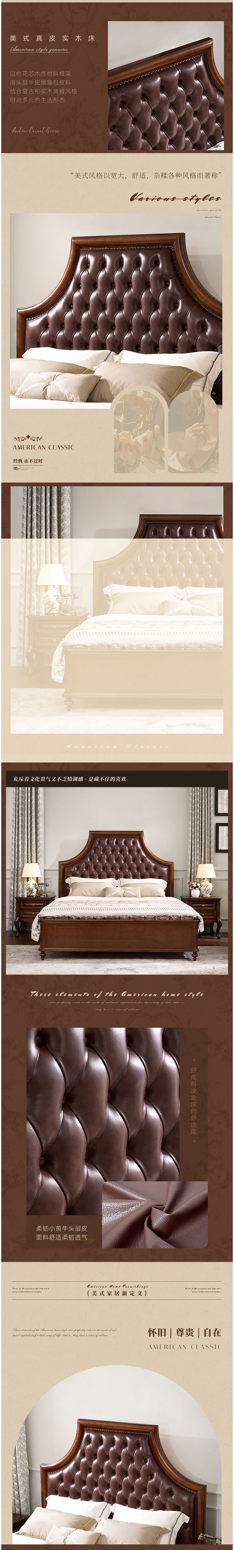 概述:美式全實木床復古桃花心木雙人床別墅高端主臥室公主房頭層牛皮床;材質:桃花心木;風格:美式;型號:8835#-P床......