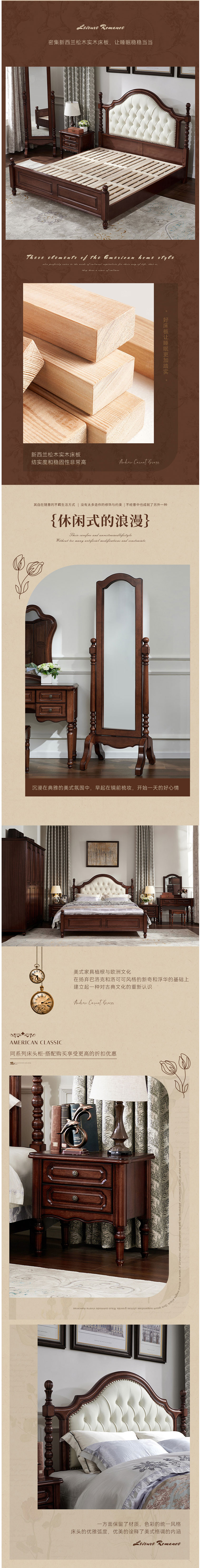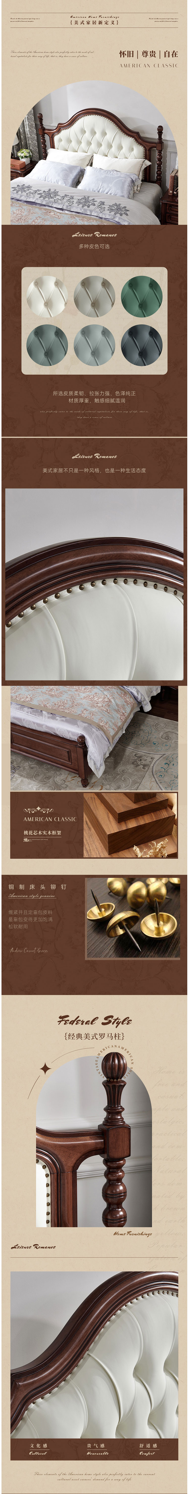• 美式家具 復古真皮床實木床 軟包床高端大床桃花心木 6064元