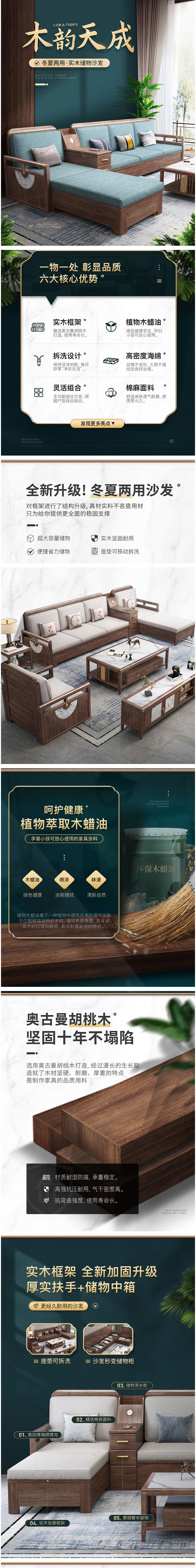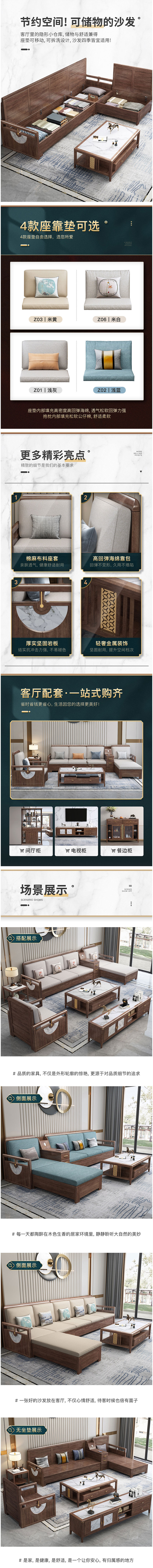 新中式家具 胡桃木實(shí)木沙發(fā) 現(xiàn)代簡(jiǎn)約實(shí)木儲(chǔ)物沙發(fā) 3513元