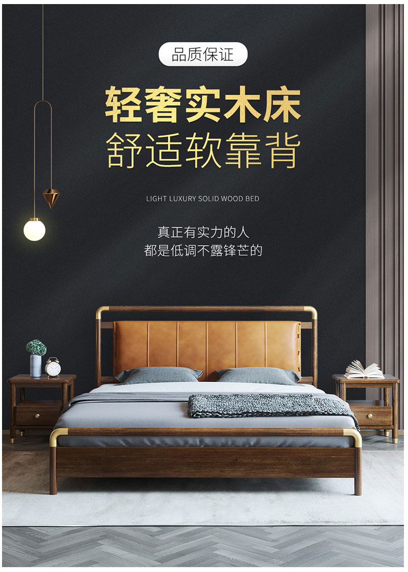 • 新中式實(shí)木床 現(xiàn)代簡(jiǎn)約胡桃木雙人床 1778元