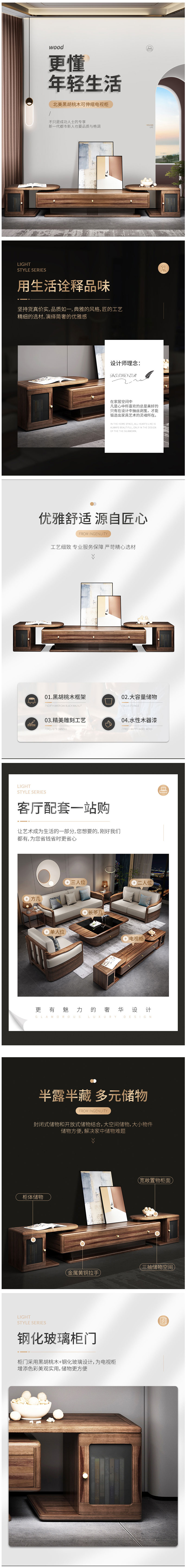 • 新中式黑胡桃木影視柜地柜 可伸縮儲(chǔ)物電視柜 7617元
