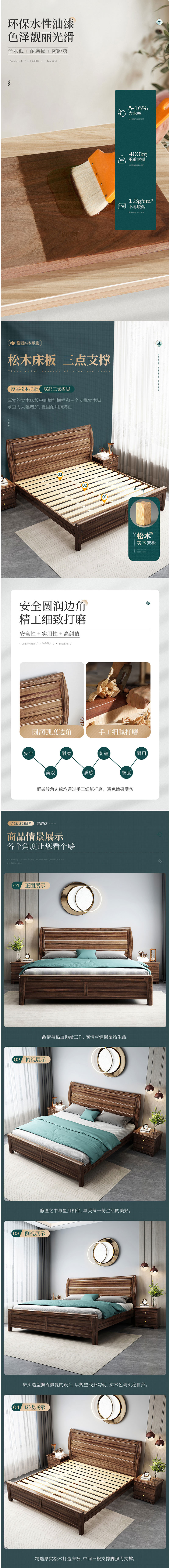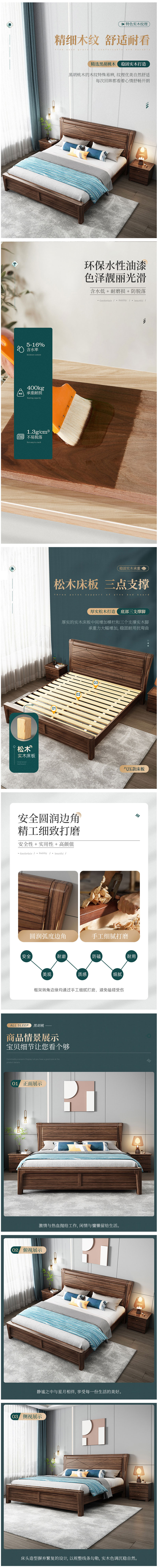 新中式家具 胡桃木實木床 現(xiàn)代簡約雙人床