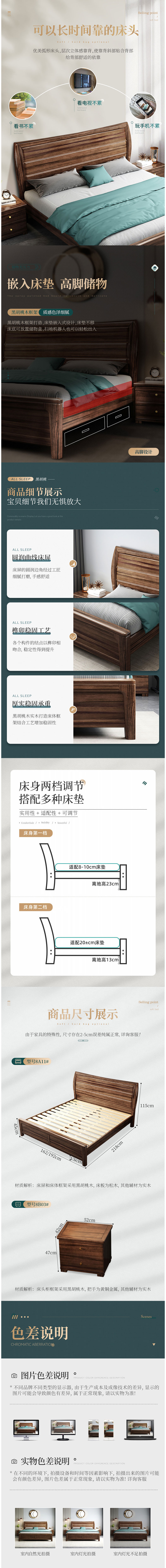 • 新中式家具 黑胡桃木全實木床 現(xiàn)代簡約木床 3978元