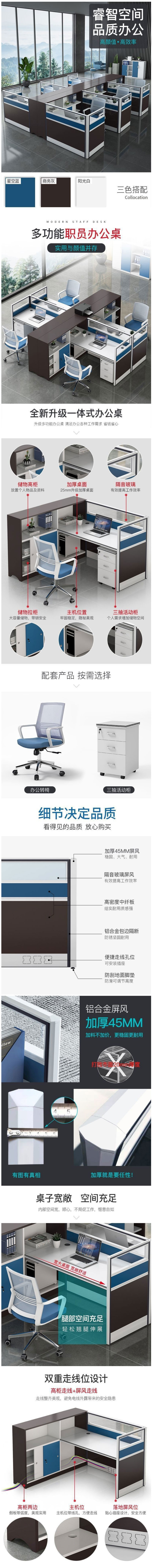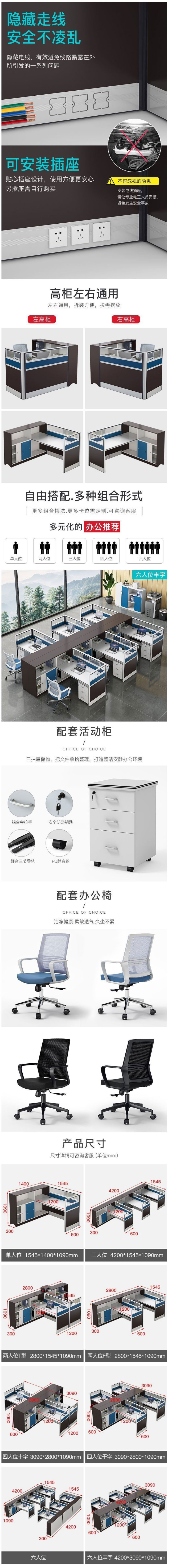 概述:職員辦公桌子辦公室員工電腦辦公桌椅組合簡約現(xiàn)代財(cái)務(wù)工公桌單人;材質(zhì):人造板;飾面材質(zhì):人造飾面板;風(fēng)格:現(xiàn)代簡約;型號:pf4;結(jié)構(gòu)材質(zhì):金屬......