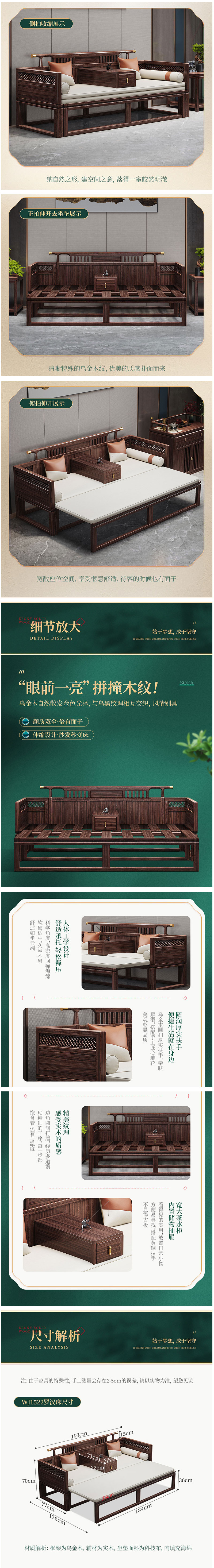 概述:新中式烏金木實(shí)木羅漢床中式客廳小戶型推拉伸縮躺椅沙發(fā);材質(zhì):實(shí)木;風(fēng)格:新中式;型號:WJ1522#羅漢床;功能:拆卸......