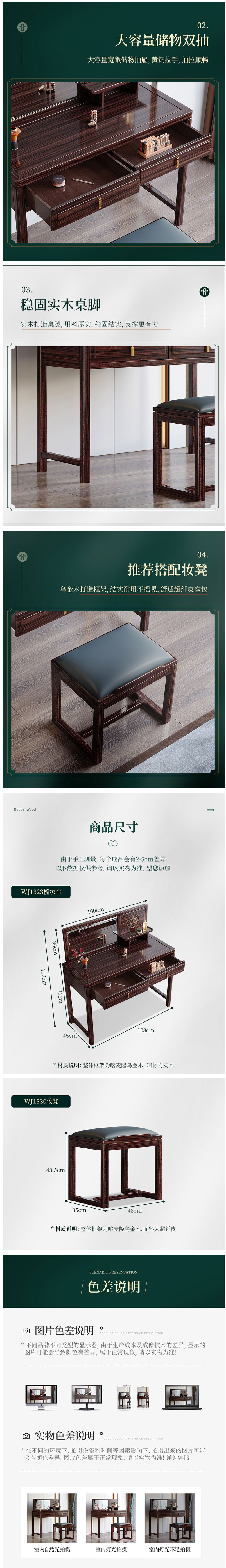 • 新中式家具 實(shí)木梳妝臺(tái) 輕奢烏金木儲(chǔ)物柜 3767元