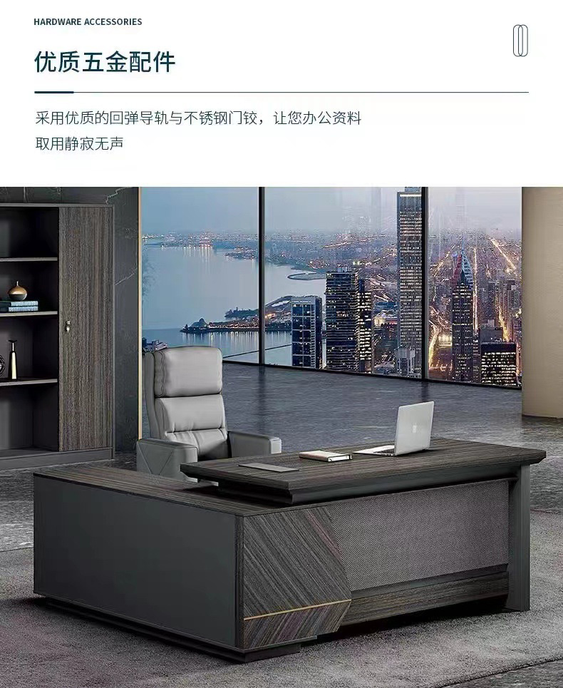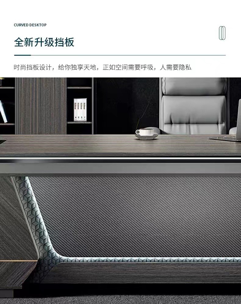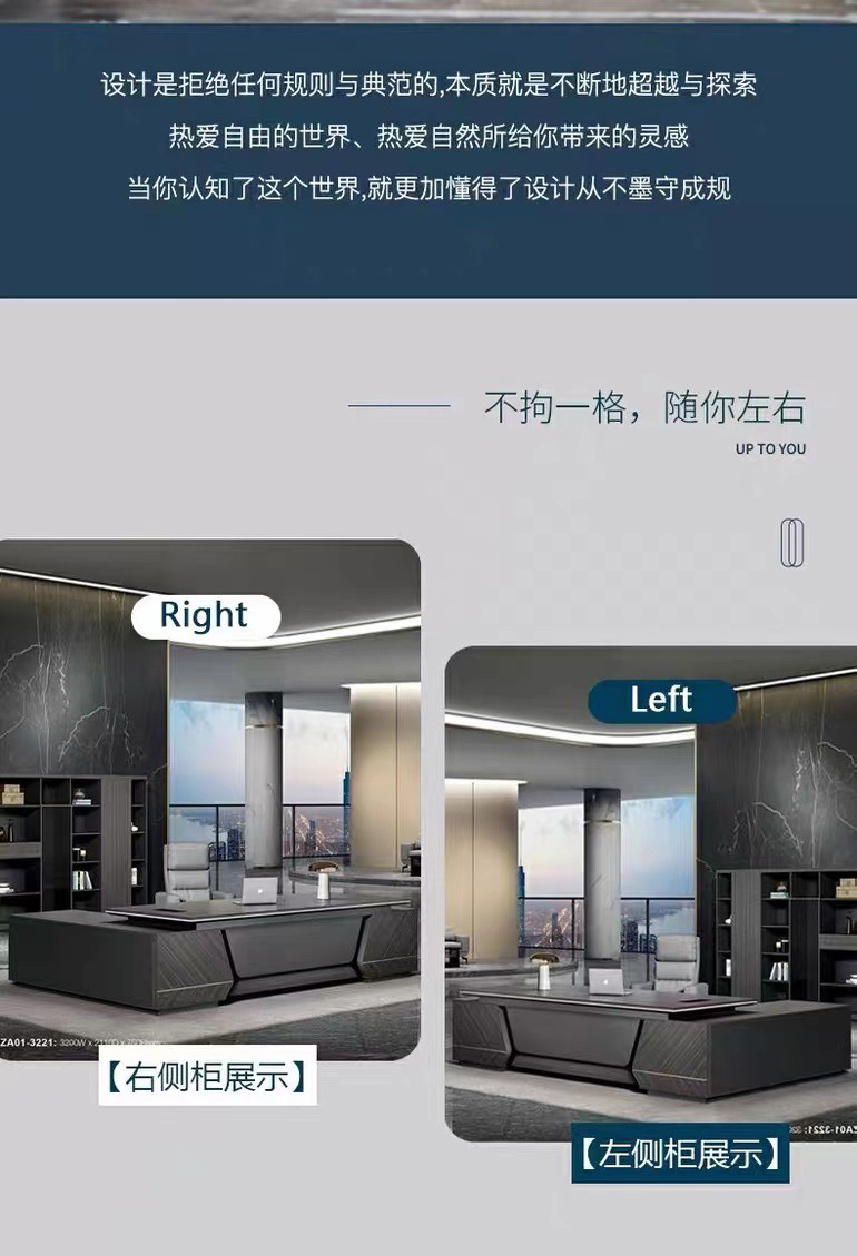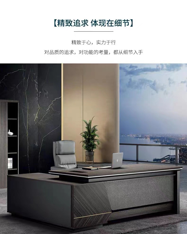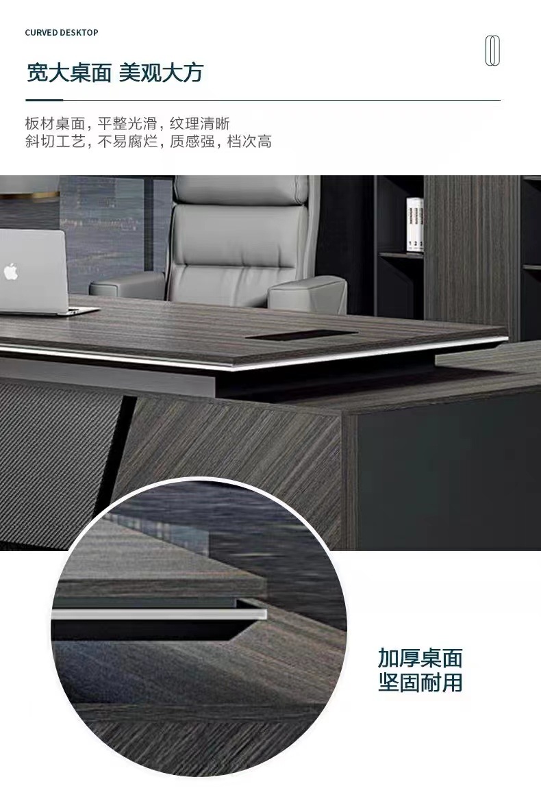 • 在繁忙的商務(wù)世界中,一款好的辦公桌椅組合不僅僅是一張桌子和幾把椅子,它代表的是企業(yè)的形象,是每位員工日常工作的伙伴。這款老板桌椅組合,集現(xiàn)代簡約設(shè)計、舒適功能于一身,專為現(xiàn)代企業(yè)領(lǐng)導(dǎo)者打造。
