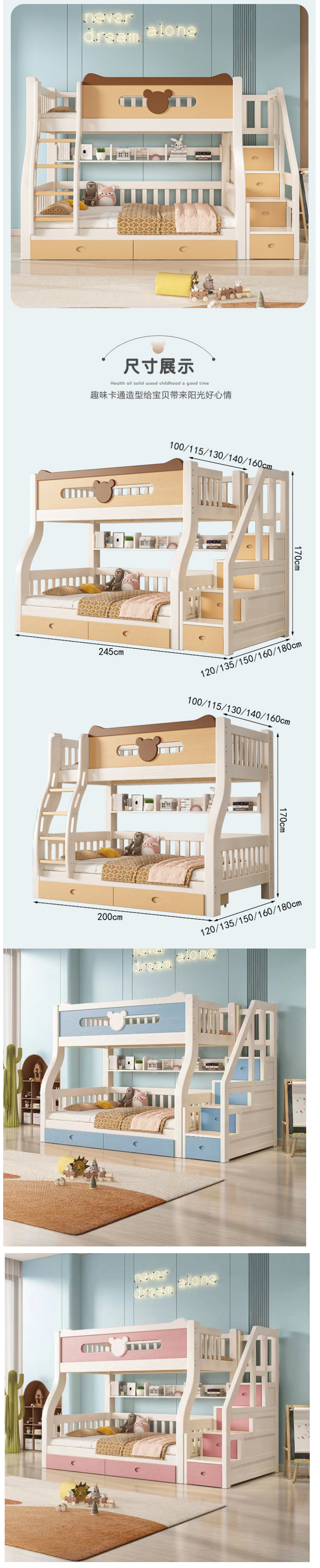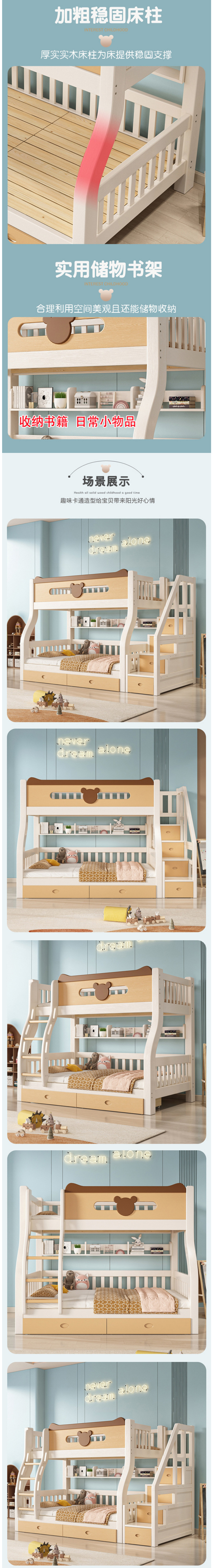 • 實(shí)木雙層床,夢(mèng)開(kāi)始的地方。全實(shí)木打造,穩(wěn)固耐用,為孩子打造安全舒適的睡眠環(huán)境。子母床設(shè)計(jì),增進(jìn)親子互動(dòng),讓陪伴成為最長(zhǎng)情的告白。上下鋪設(shè)計(jì),節(jié)省空間,小戶型也能擁有大夢(mèng)想。多功能高箱床底,收納儲(chǔ)物兩不誤,讓孩子的世界更加整潔有序。高低床設(shè)計(jì),適應(yīng)不同年齡段的孩子,陪伴他們成長(zhǎng)的每一步。實(shí)木雙層床,讓孩子的童年充滿溫馨與歡樂(lè),快來(lái)選購(gòu),為孩子的夢(mèng)想插上翅膀!