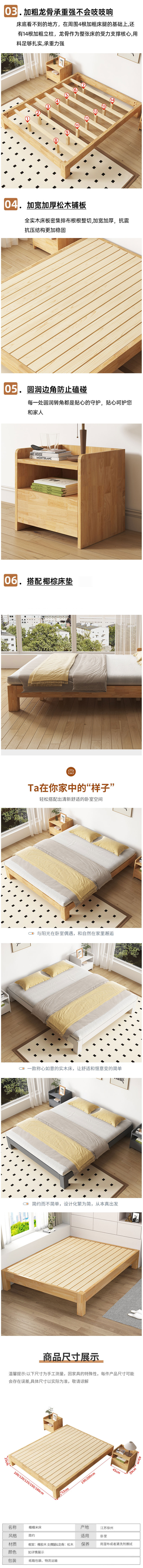 • 在繁忙的都市生活中,我們追求的不僅是舒適,更是品質(zhì)與風(fēng)格的結(jié)合。我們的現(xiàn)代簡約實(shí)木床,精選優(yōu)質(zhì)松木,自然質(zhì)樸,簡約而不簡單。1.5米、1.8米寬度的雙人床,適合家庭使用;而1.2米簡易單人床,則是經(jīng)濟(jì)型出租房的理想之選。舒適睡眠,從選對床開始。讓每一天的疲憊,在松木的溫柔懷抱中消散,享受家的寧靜與溫馨。