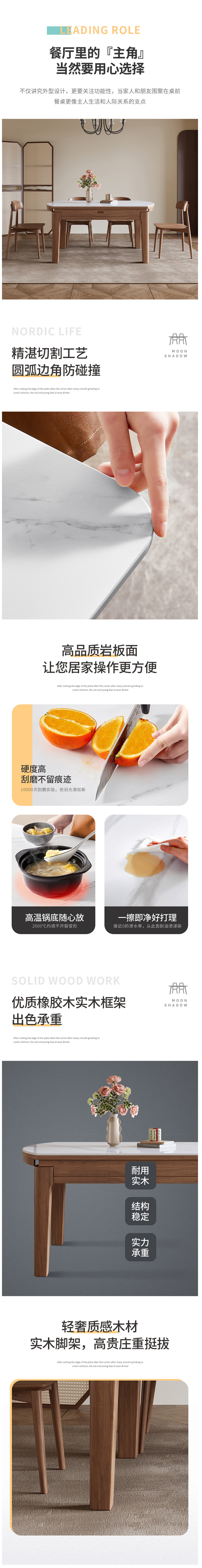 簡(jiǎn)約的線條,搭配輕奢的風(fēng)格,讓它成為您家中的一道亮麗風(fēng)景線。無(wú)論是與家人共享溫馨晚餐,還是與朋友舉辦聚會(huì),這款實(shí)木巖板餐桌都能為您提供舒適的用餐體驗(yàn)。