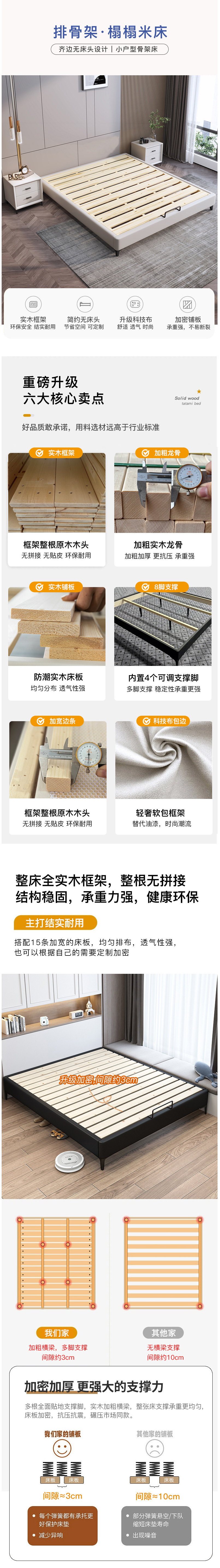選擇我們的全實(shí)木排骨架榻榻米無(wú)床頭齊邊矮床體,就是選擇舒適、健康和時(shí)尚。讓我們一起為您的空間注入新的活力!快來(lái)體驗(yàn)吧!"