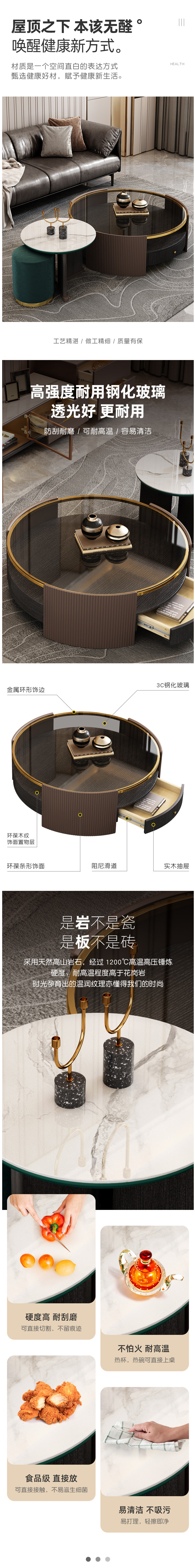 > 簡約輕奢巖板圓形茶幾組合 現代客廳電視柜整裝高腳地柜