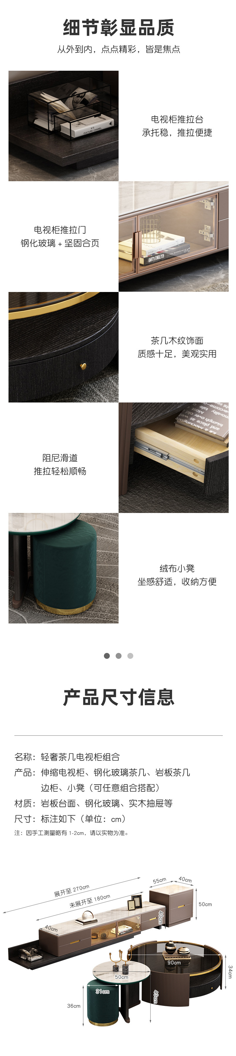• 現代簡約輕奢巖板可伸縮圓形茶幾電視柜組合 客廳小戶型家用電視柜 1327元起
