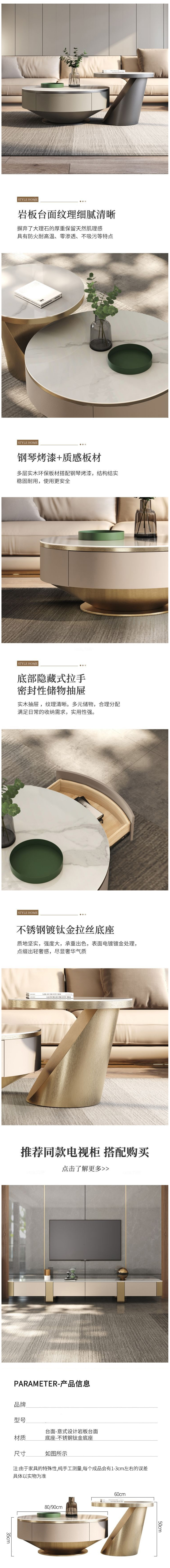 概述:輕奢巖板圓形茶幾大小組合客廳設計師現代簡約電視柜整裝高腳地柜;貨號:DSG95【YX:金邊電視柜】,材質:金屬,風格:輕奢,家具結構:框架結構......