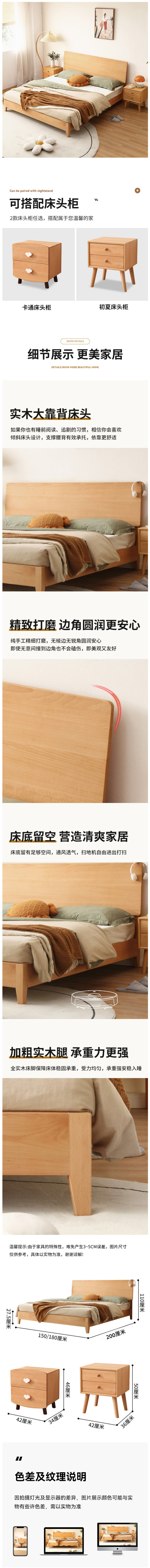 • 北歐家具 櫸木靠背實木床 原木風齊邊床 1742元起