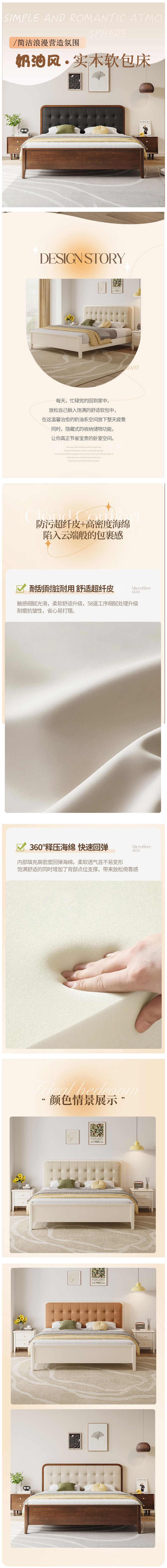 北歐家具 實(shí)木床 現(xiàn)代簡(jiǎn)約主臥輕奢白色床 1315元起