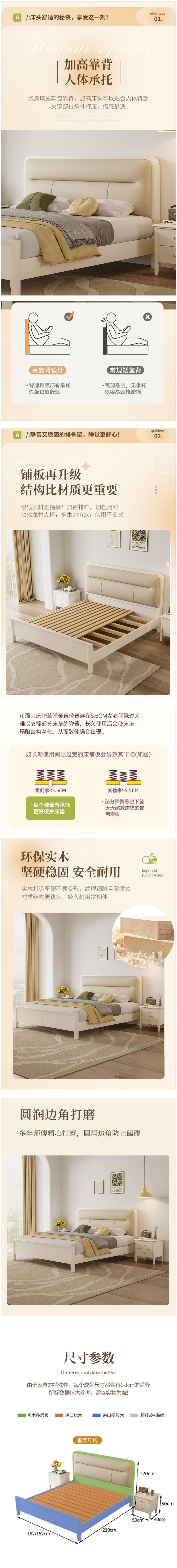 北歐家具 實(shí)木床 現(xiàn)代簡(jiǎn)約主臥輕奢白色床