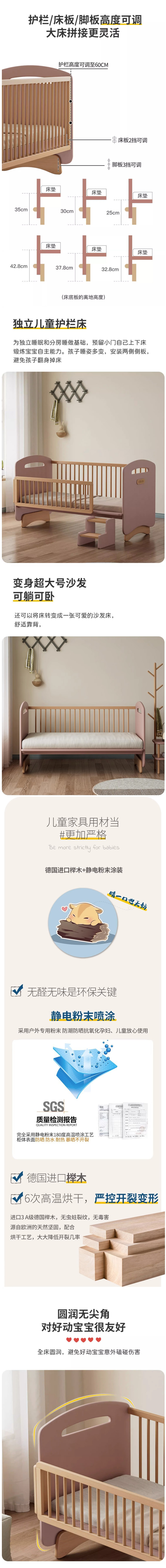 • 櫸木兒童床 拼接大床加寬寶寶床邊床實(shí)木床帶護(hù)欄 1614元起