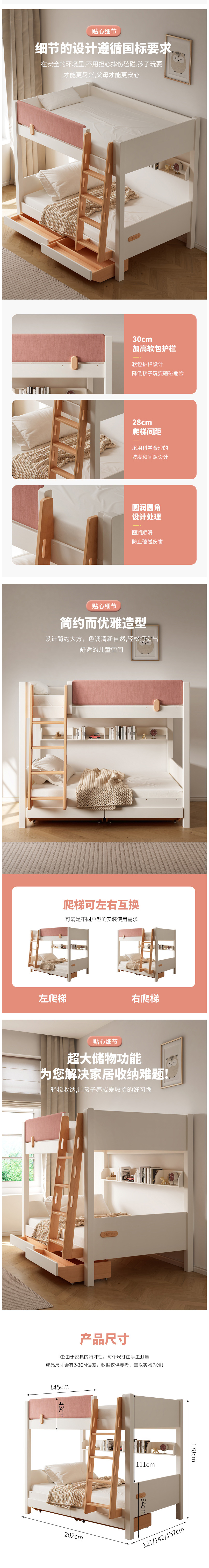 • 兒童高低床 上下鋪雙層床粉色方糖橡膠木公主小床 2772元起
