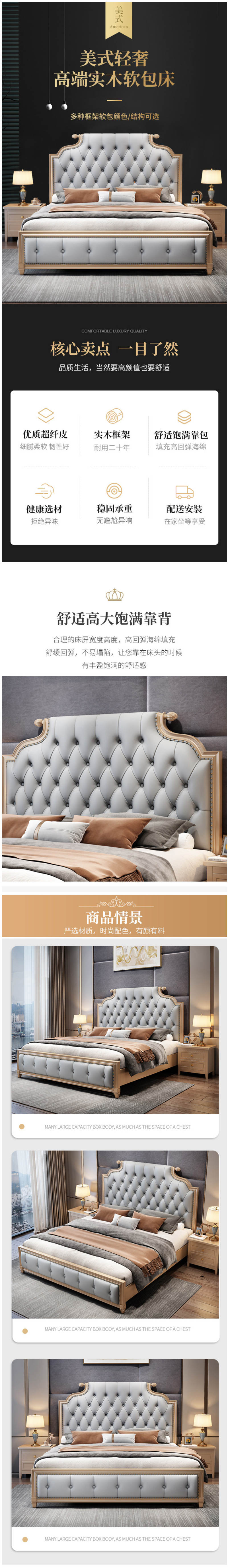 > 美式家具 輕奢實木主臥大床 現(xiàn)代簡約豪華歐式高靠背床