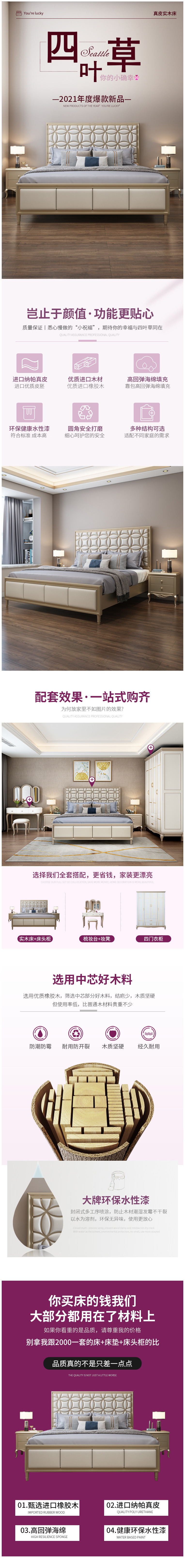 美式家具 輕奢實(shí)木床 現(xiàn)代簡約主臥四葉草床 2229元起