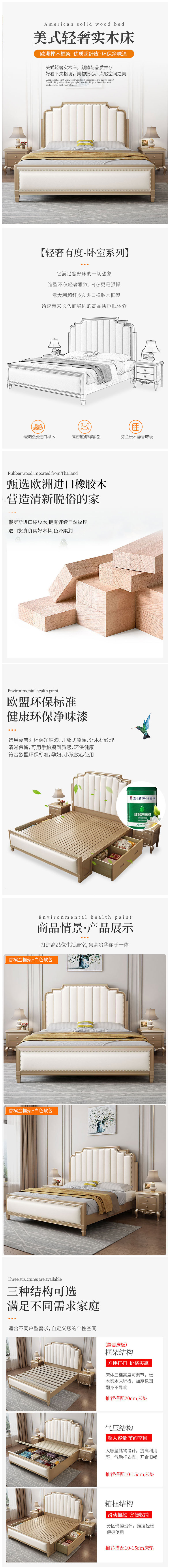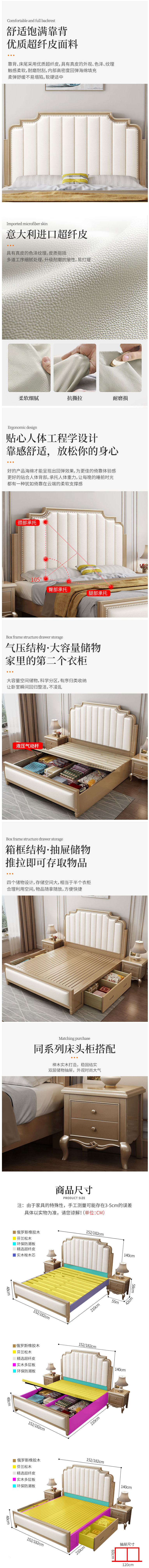 概述:美式輕奢實木床1.8米現(xiàn)代簡約雙人床主臥真皮婚床1.5奶油風公主床;材質:橡膠木;風格:美式;型號:MP929【2205#】;......