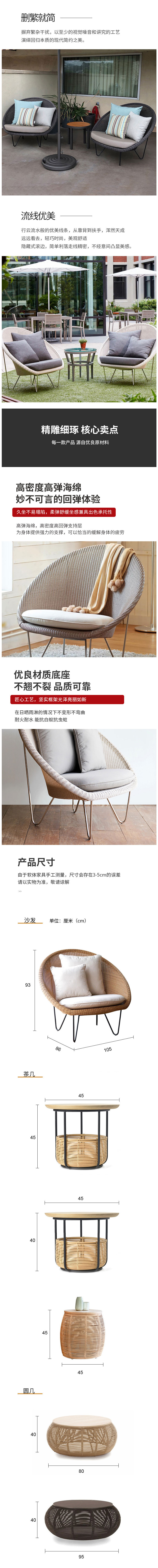 • 北歐庭院藤沙發(fā) 陽臺(tái)藤編小沙發(fā)椅 懶人藤椅圓形休閑椅 1545元