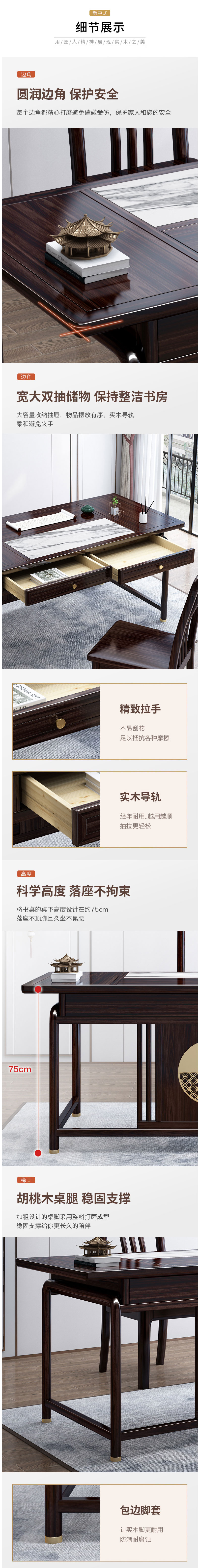 新中式書(shū)桌 胡桃木實(shí)木書(shū)桌椅 簡(jiǎn)約辦公電腦帶抽屜桌子書(shū)房家具 3562元起