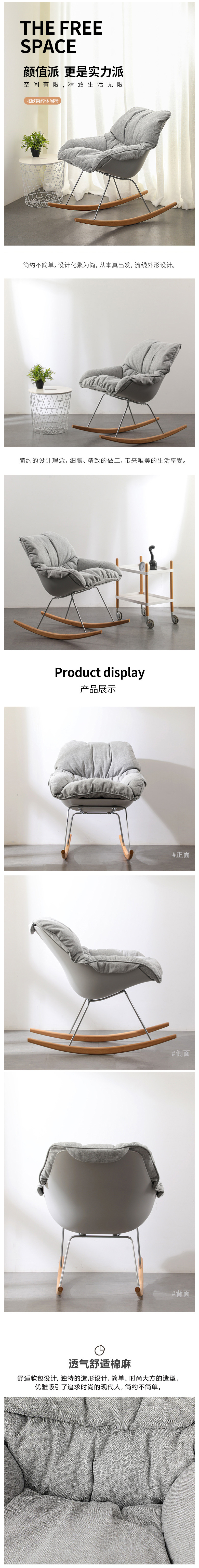 • 北歐時尚設計師搖椅客廳沙發(fā)椅單人休閑懶人椅現(xiàn)代簡約陽臺搖搖椅 947元