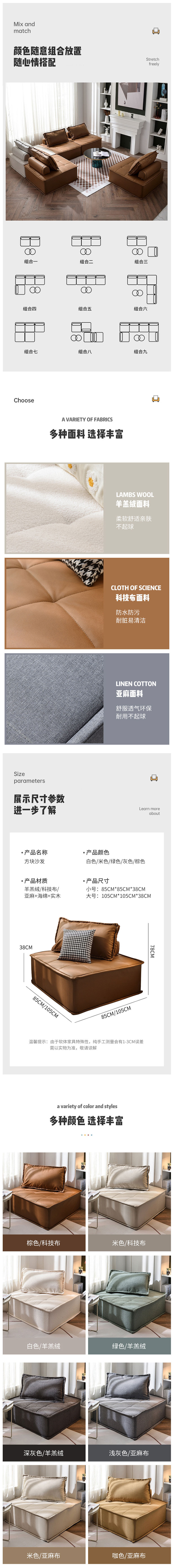 • 北歐落地小戶型客廳沙發(fā) 豆腐塊模塊單人沙發(fā) 極簡(jiǎn)榻榻米懶人沙發(fā)椅 507元起