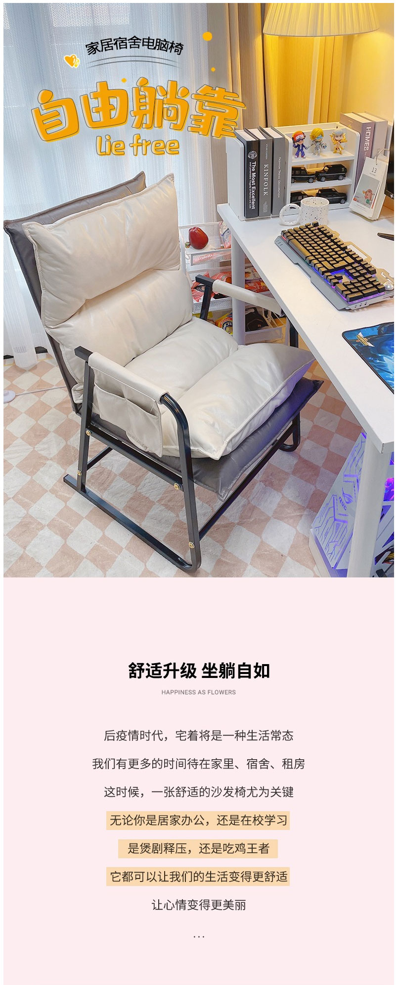 > 懶人電腦沙發(fā)椅 家用舒服久坐休閑椅 書(shū)房辦公書(shū)桌椅臥室可躺靠背椅