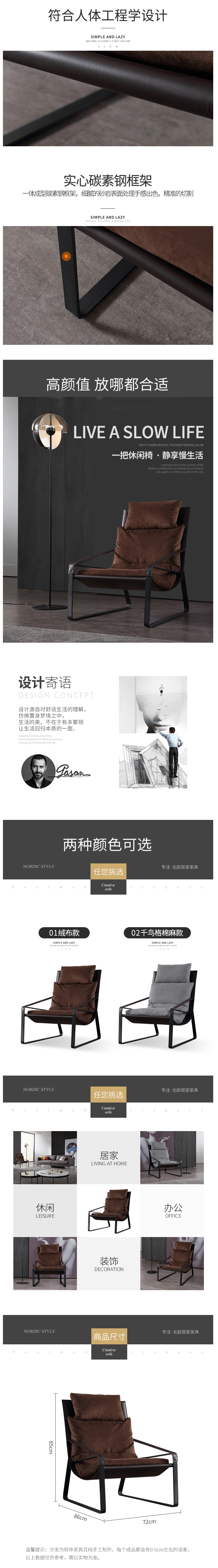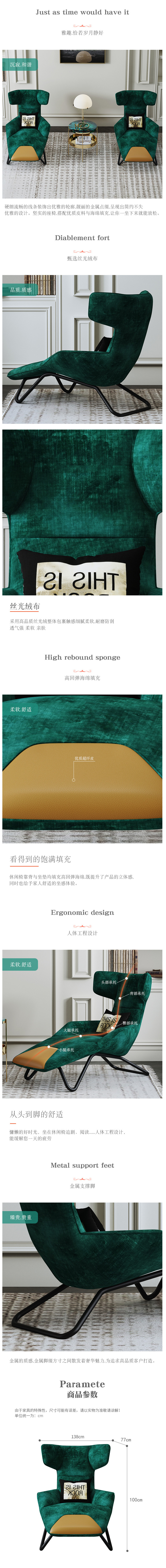 > 意式風(fēng)格單人沙發(fā) 北歐設(shè)客廳休閑椅子躺椅絨布座包老虎椅